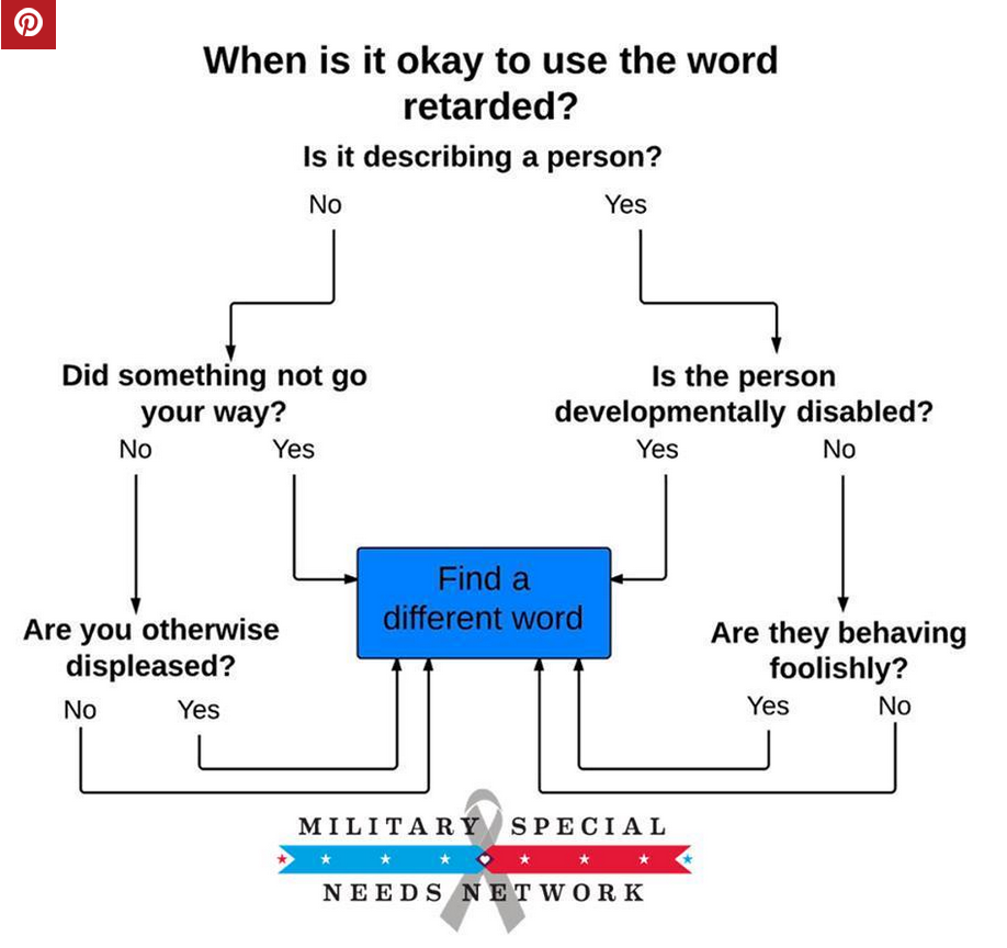 The R-word used to be part of my vocabulary but now I replaced that word with ridiculous instead 🙂